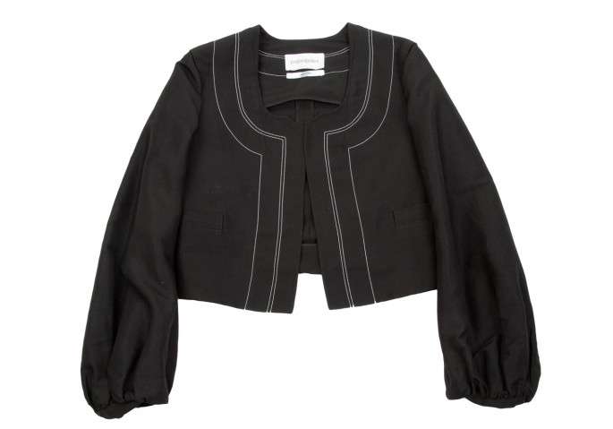 【SALE】イヴサンローランYves Saint Laurent パフスリーブボタンレスリネンシルクジャケット 黒38