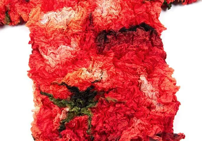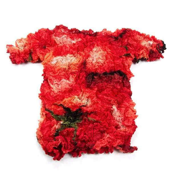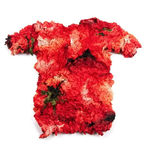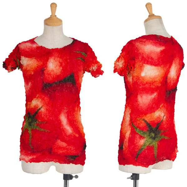 イッセイミヤケ フェットISSEY MIYAKE FETE シワ加工プリントデザイン半袖トップス 濃淡赤他2