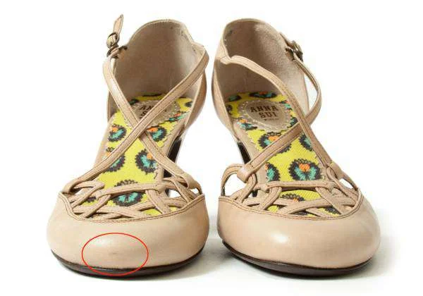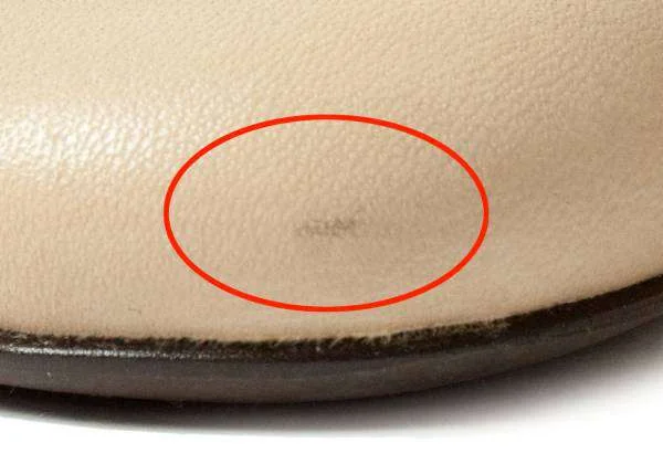 つま先部分、留め具に汚れ、踵部分に擦れ・穴があります(画像参照)。その他、ソールの減りも少なく、目立ったシミ、汚れ、キズ等なくいい状態です。