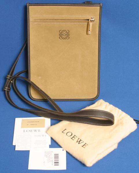 ロエベLOEWE スウェードショルダーバッグ、ポシェット 茶