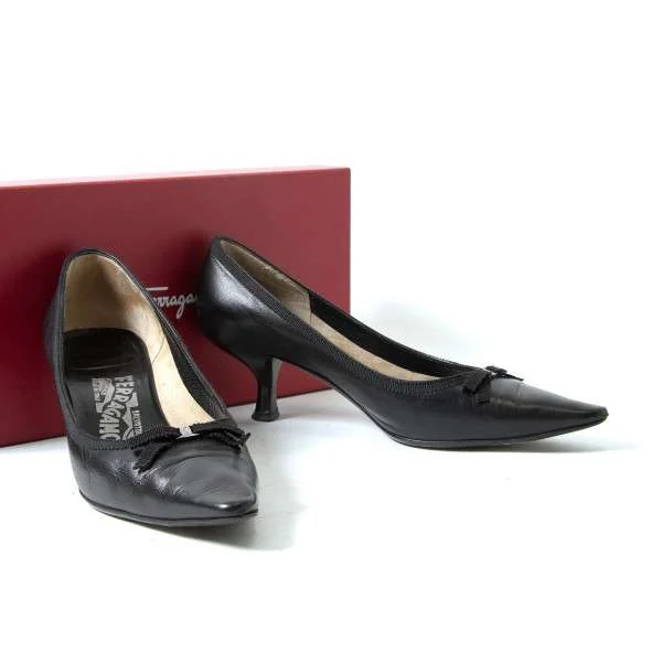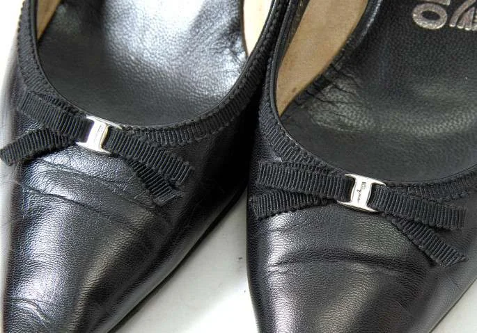 【SALE】サルバトーレフェラガモSalvatore Ferragamo レザーヒールパンプス 黒6(24位)