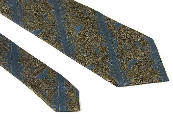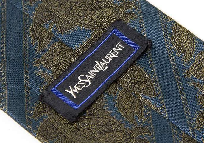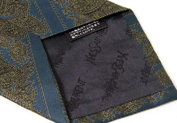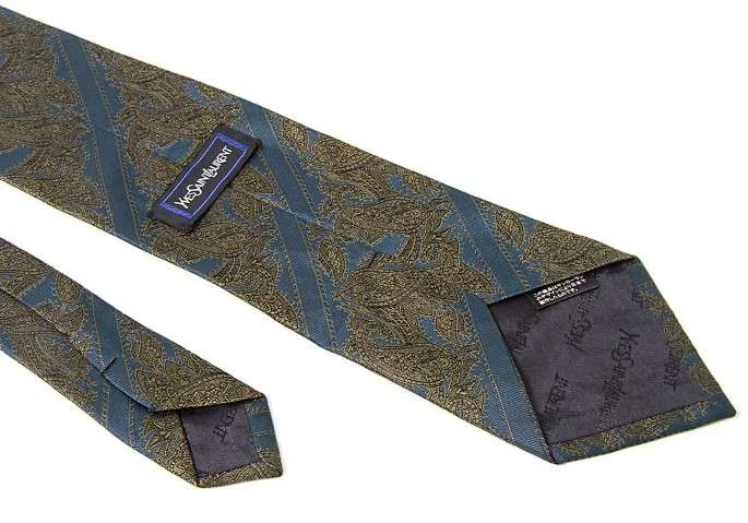 【SALE】イヴサンローランYves Saint Laurent ペイズリー柄シルクネクタイ 青/黄