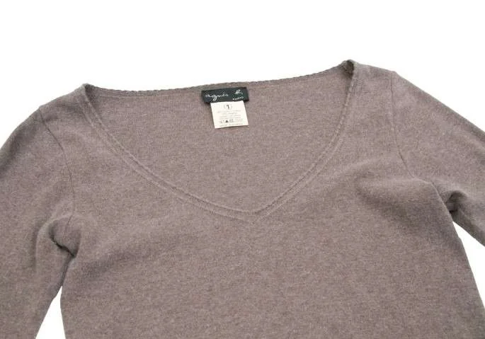 【SALE】アニエスベーagnes b コットンアンゴラVネックニットセーター 杢茶1