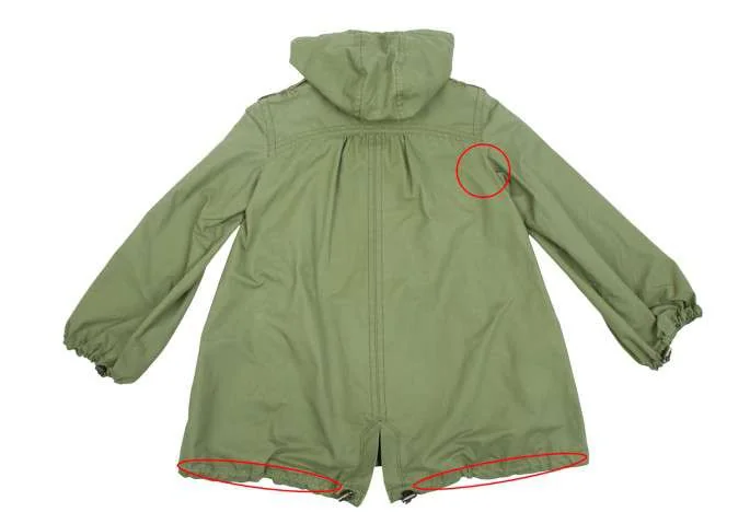 前後身頃、フードに薄汚れ、裾に色褪せがあります (画像参照)。その他は目立ったシミ、汚れ、ほつれ等ありません。
