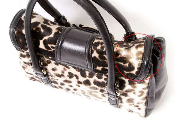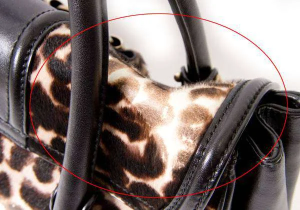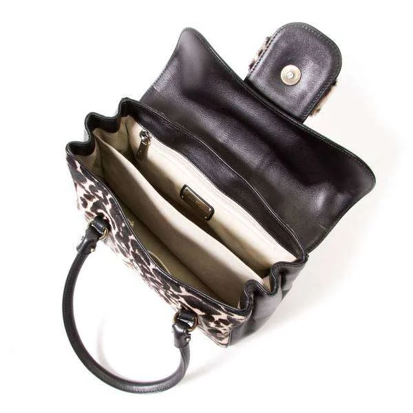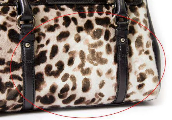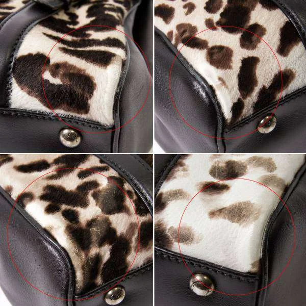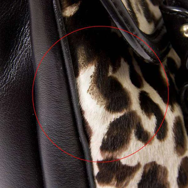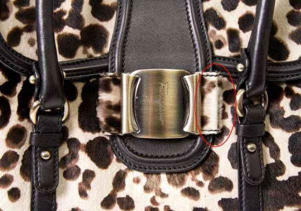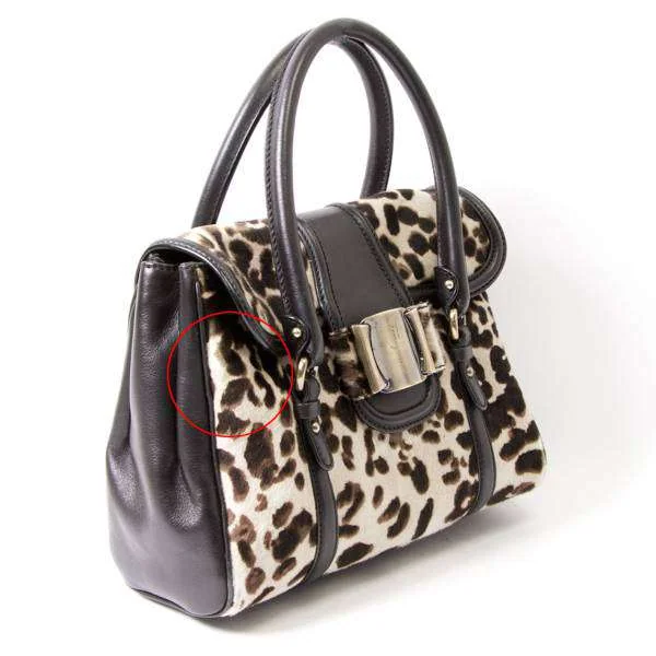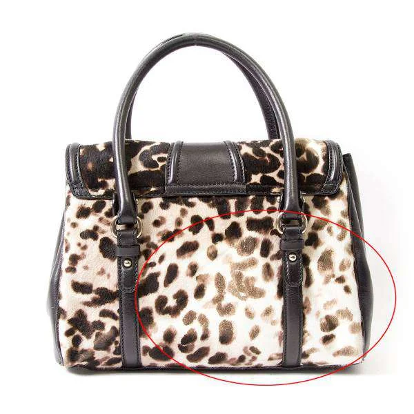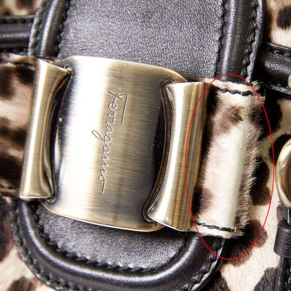 残念!サルバトーレフェラガモSalvatore Ferragamo ハラコレオパードハンドバッグ ベージュ黒