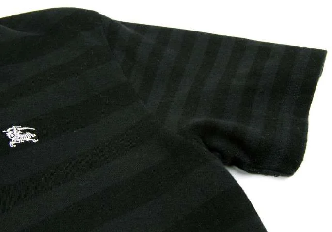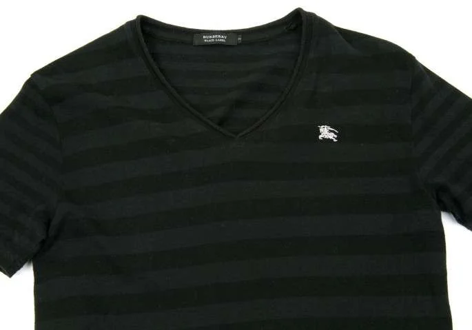 バーバリーブラックレーベルBURBERRY BLACK LABEL ボーダーVネックカットソー 黒2
