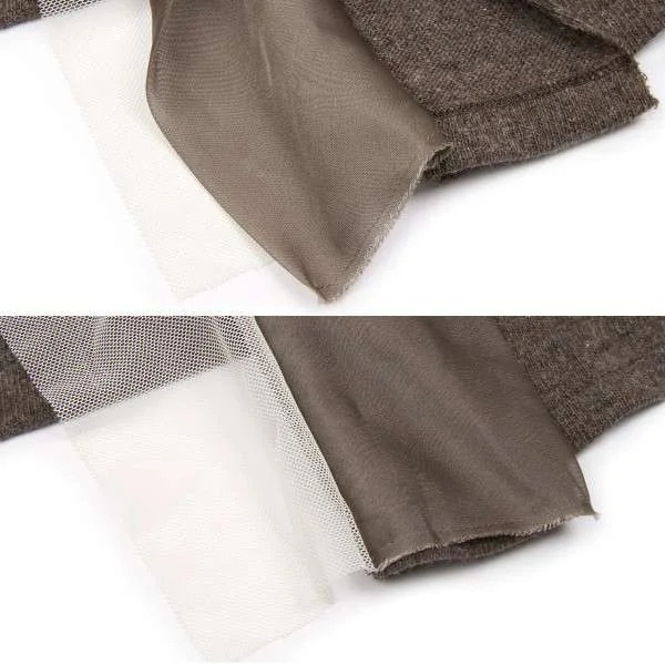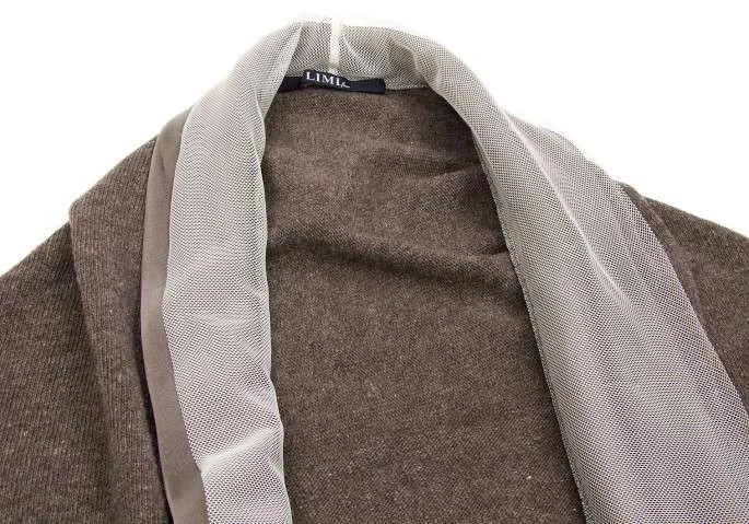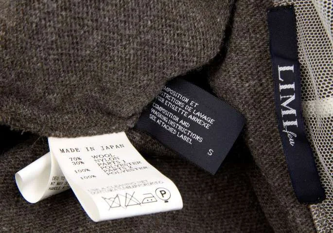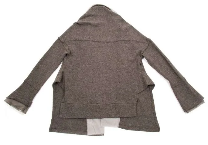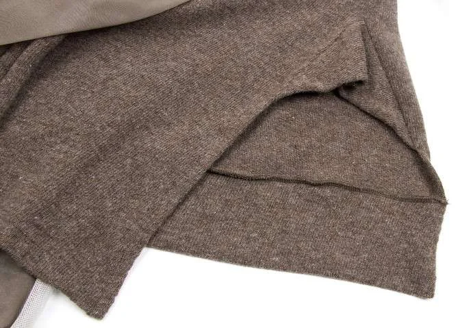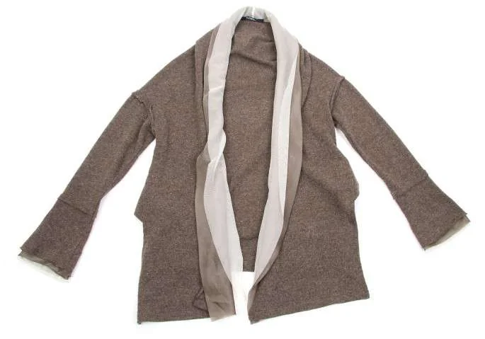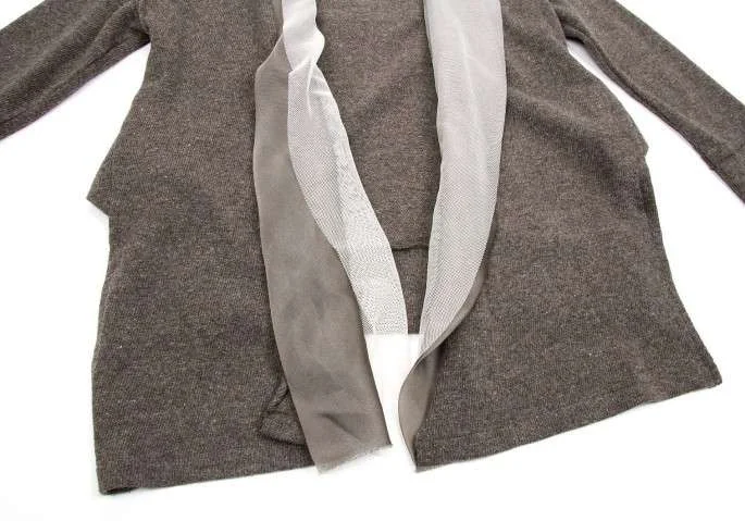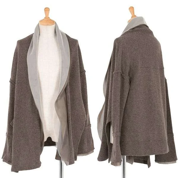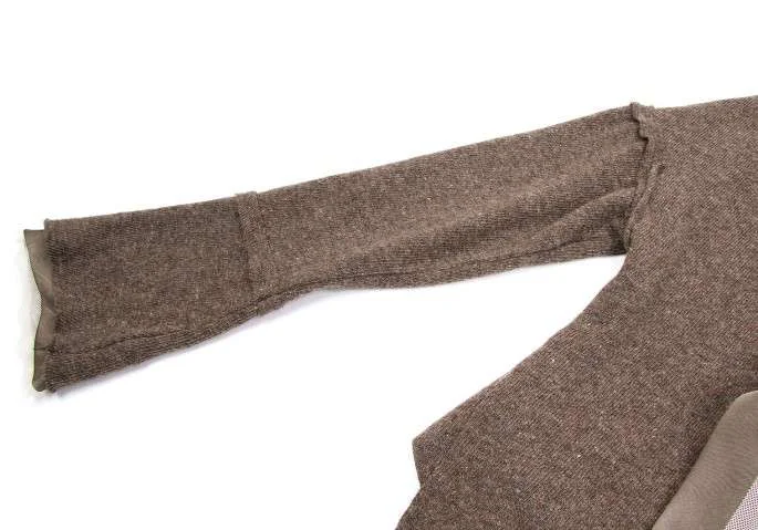 【SALE】リミフゥLIMI feu メッシュポリ切替ボタンレスニットジャケット 茶S