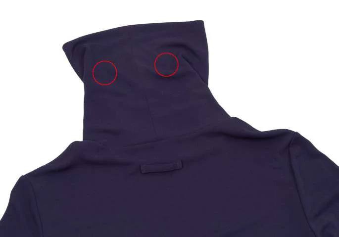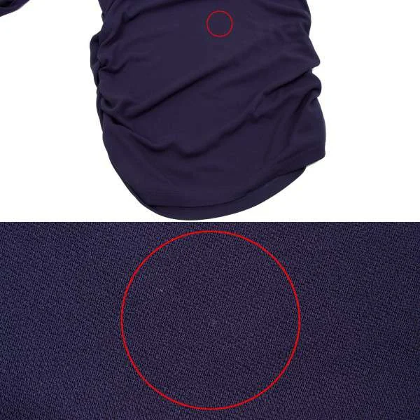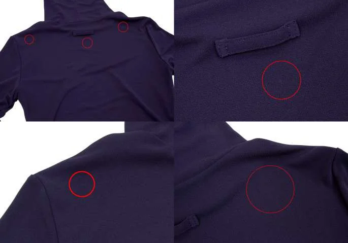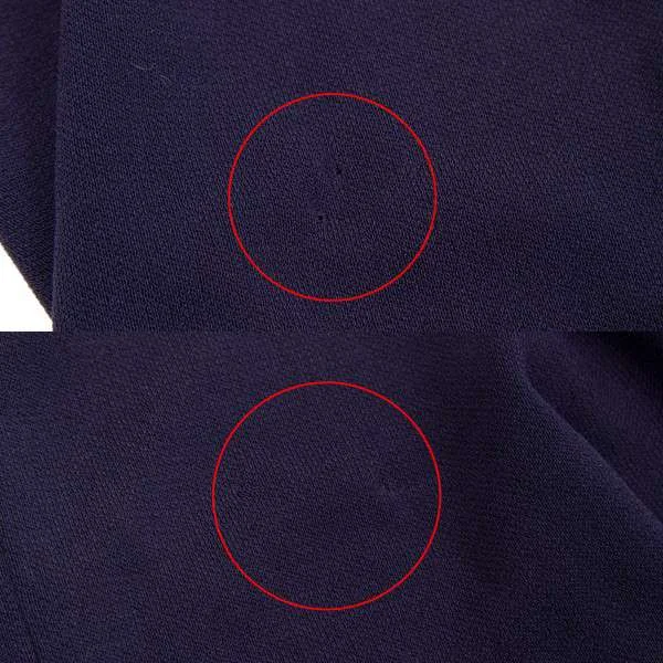 前後身頃に薄汚れ、首裏に小穴があります(画像参照)。その他は目立ったシミ、汚れ、ほつれ等ありません。クリーニング済み