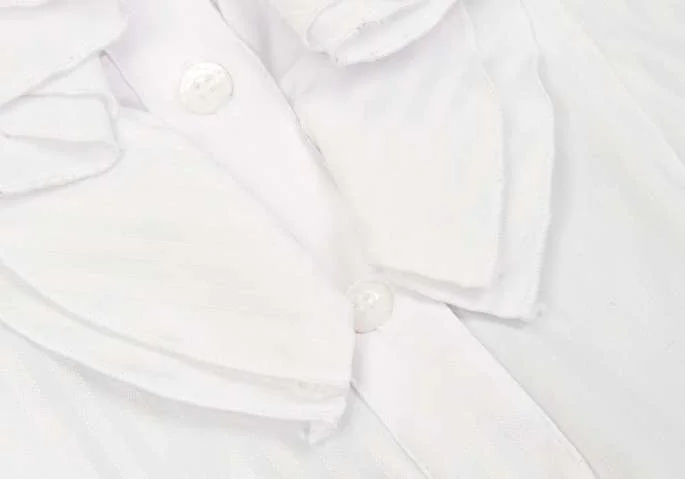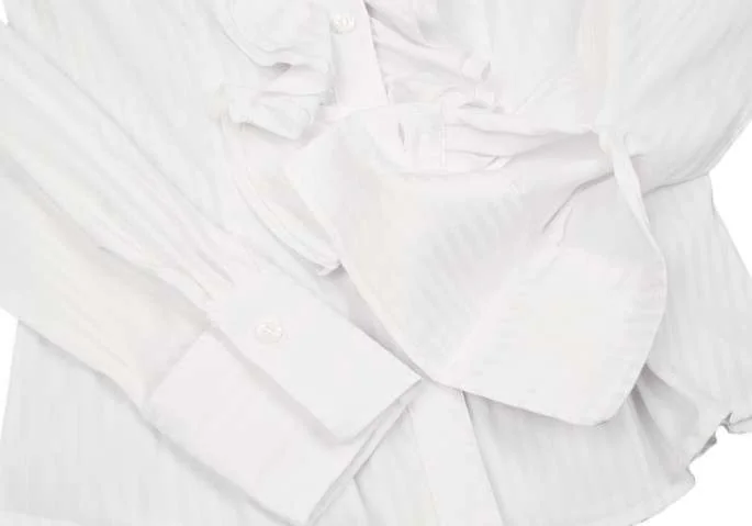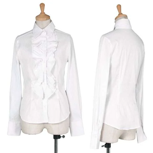 ナラカミーチェNARACAMICIE コットンポリストレッチストライプフリルシャツ 白0