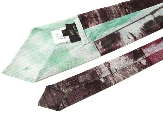 ジャンポールゴルチエオムJean Paul GAULTIER HOMME パワーネットプリントネクタイ 茶緑48