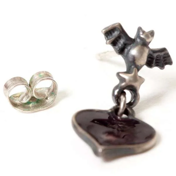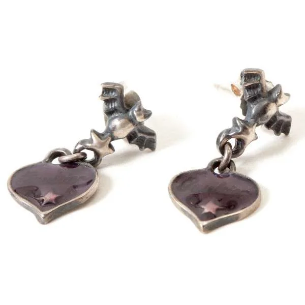 ジャンポールゴルチエJean Paul GAULTIER ハートコウモリシルバーピアス エンジ