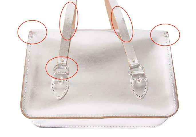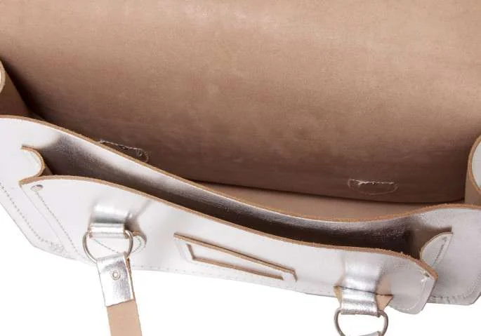 コムコム コムデギャルソン×ケンブリッジ・サッチェル・カンパニー COMME des GARCONS×The Cambridge Satchel Company レザーバッグ シルバー