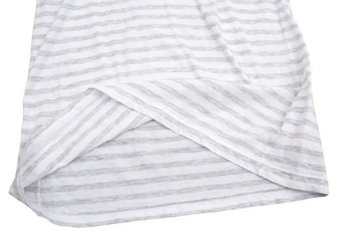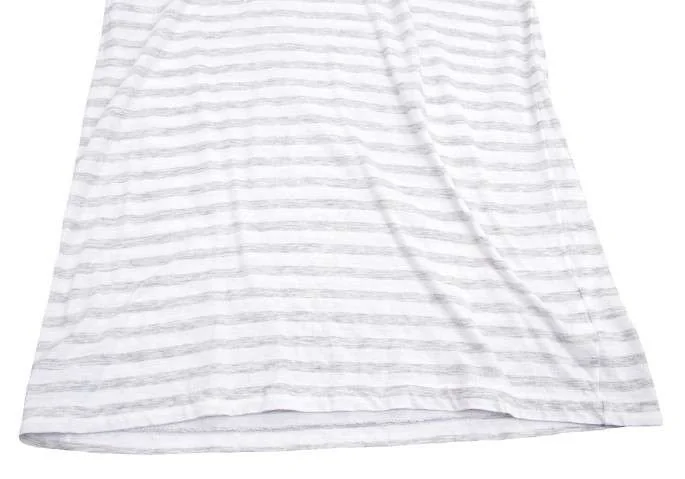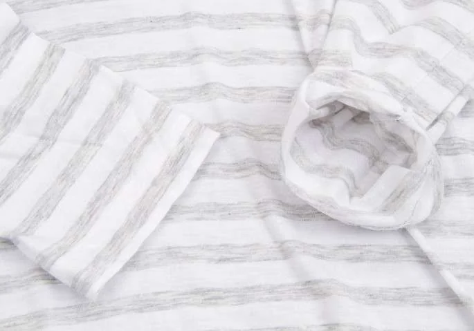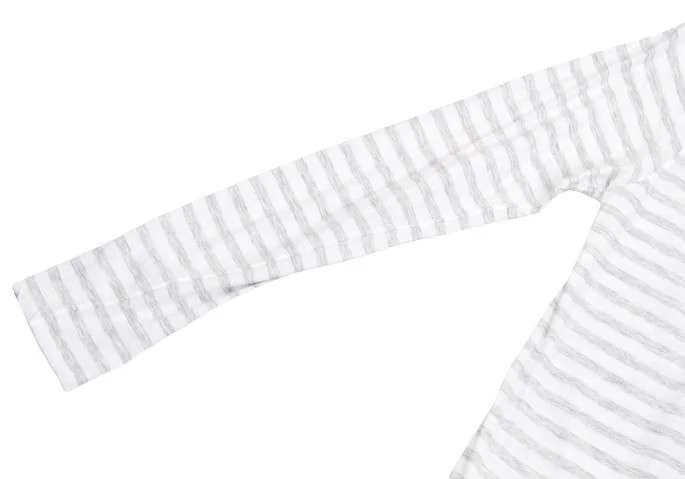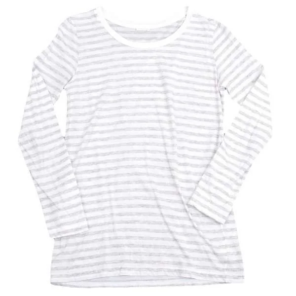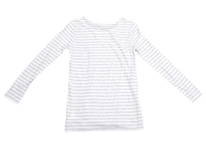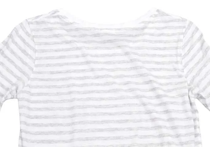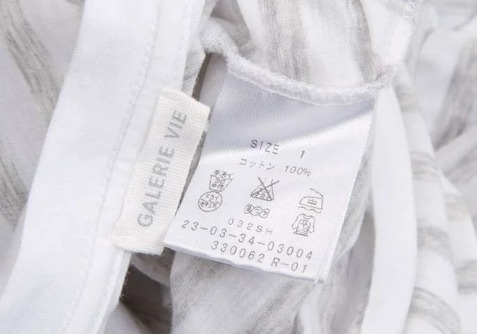 ギャルリー ヴィー GALERIE VIE ラウンドネックボーダーコットン長袖トップス 白グレー1