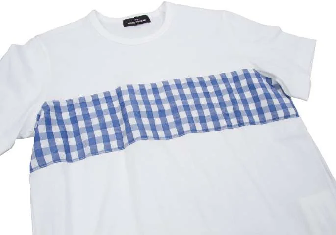 トリコ コムデギャルソンtricot COMME des GARCONS フロントチェックデザインTシャツ 白青S位