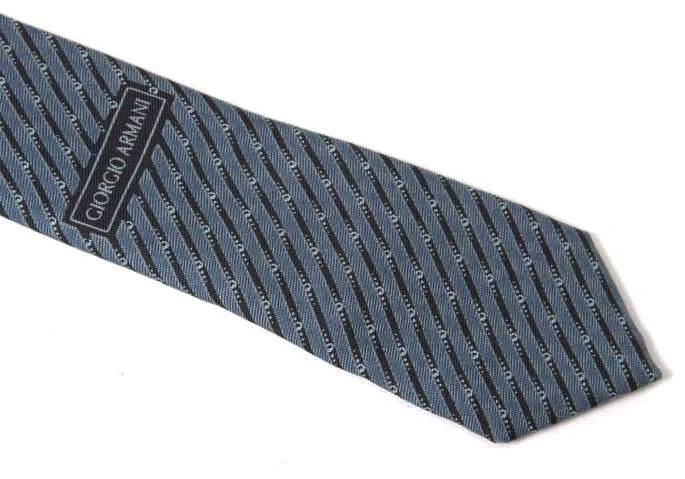 アルマーニコレツィオーニARMANI COLLEZIONI バイアスストライプシルクネクタイ 水色紺
