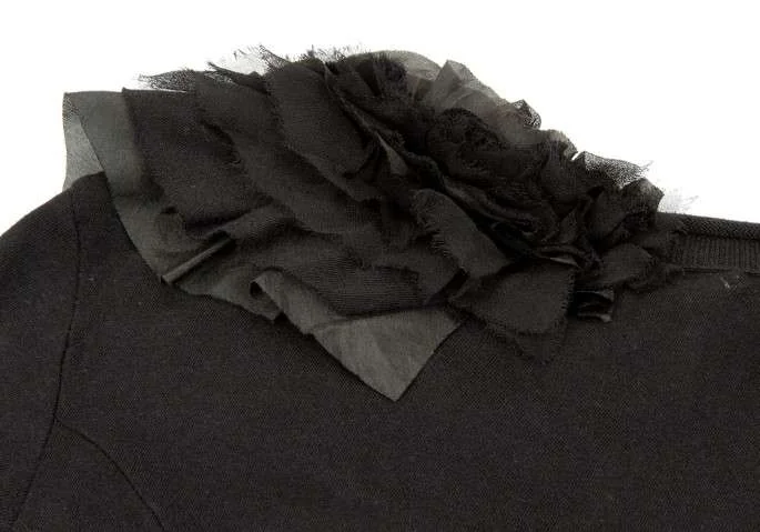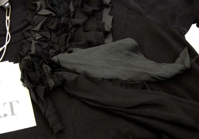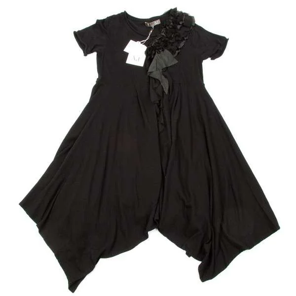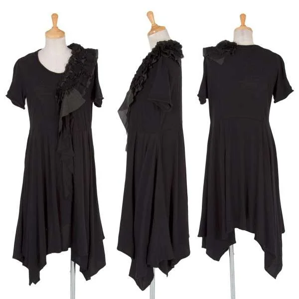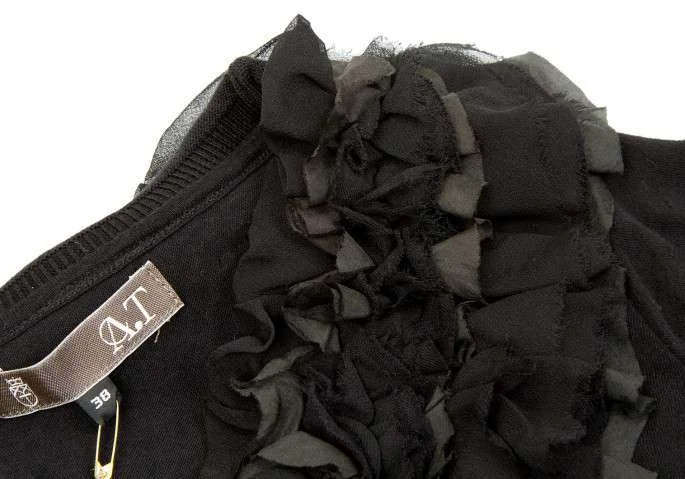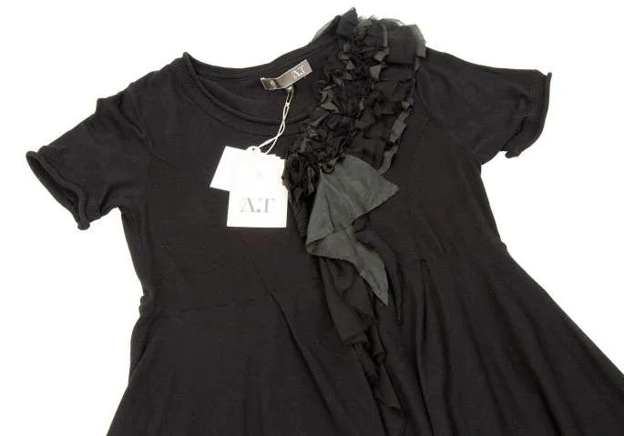 アツロウタヤマA/T シルクフリル貼り付け半袖コットンワンピース 黒38