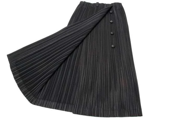 【SALE】イッセイミヤケISSEY MIYAKEステッチプリーツロングスカート 黒白M