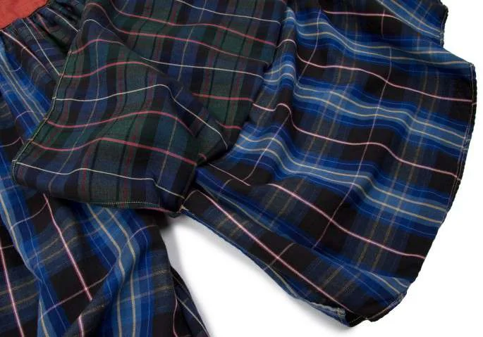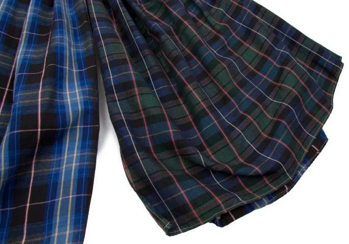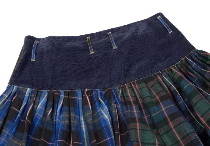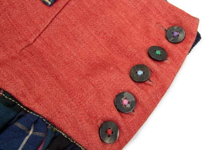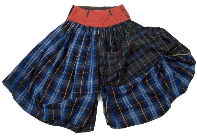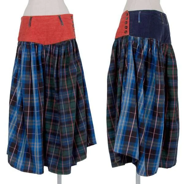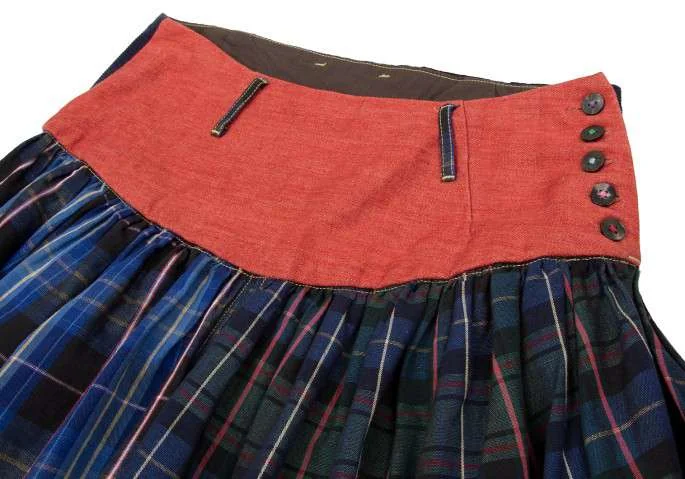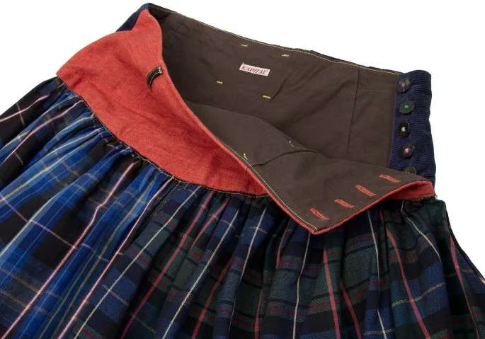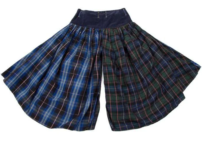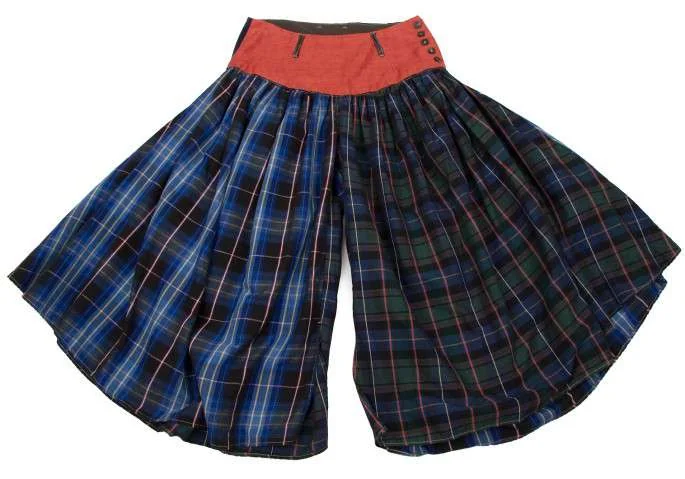 キャピタルKapital リネン混チェック柄切替デザインガウチョパンツ 赤紺緑他0