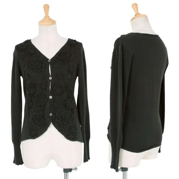 【SALE】アツロウタヤマA/T フラワーレース編みコットンカーディガン モスグリーンM位