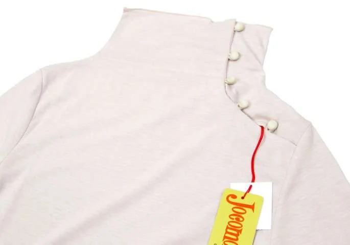 ホコモモラ Jocomomola ハイネック左肩ボタンストレッチプルオーバー ベージュ40