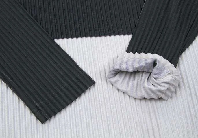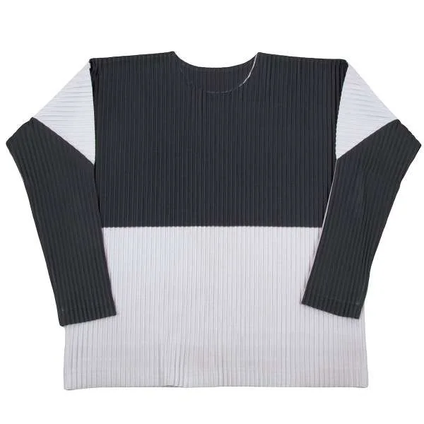 オムプリッセ イッセイ ミヤケHOMME PLISSE ISSEY MIYAKE バイカラープリーツ長袖トップス 黒ライトグレー2