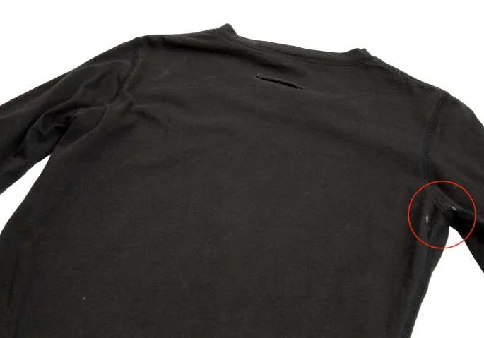 全体的に着用感あり。袖裏に縫い目解れ、後身頃右脇に汚れあり(写真参照)。