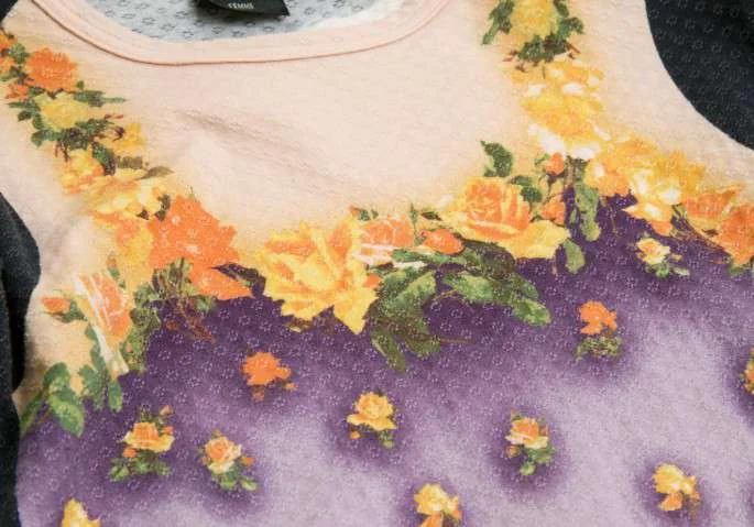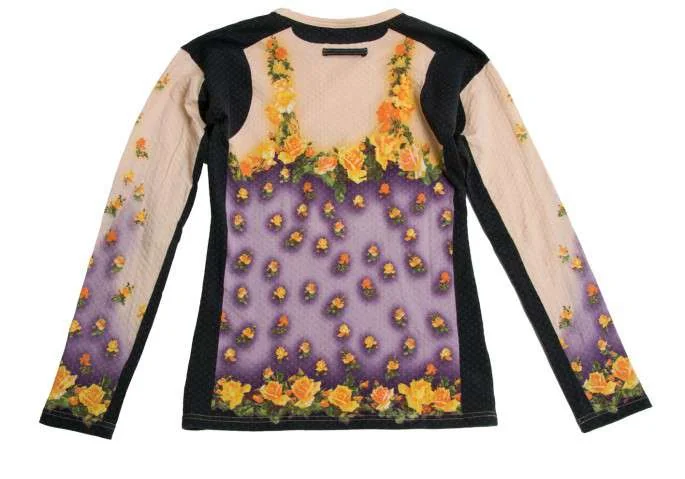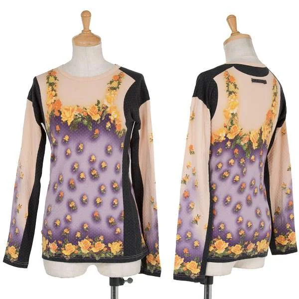 ジャンポールゴルチエファムJean Paul GAULTIER FEMME キャミ花柄ワッフルカットソー 黒パープル40