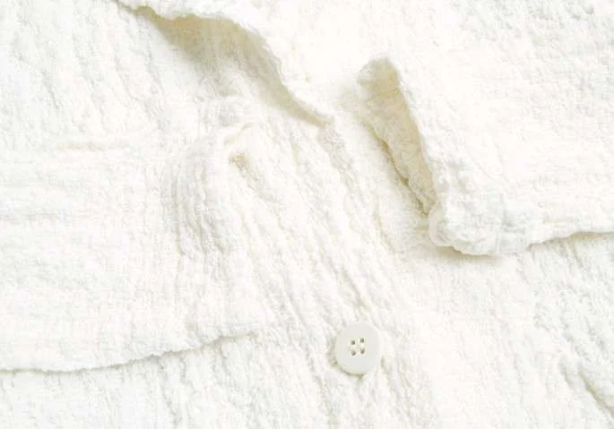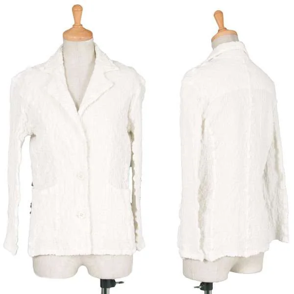【SALE】イッセイミヤケ ミーISSEY MIYAKE me カリフラワーシワ加工コットン2Bジャケット オフホワイトM位