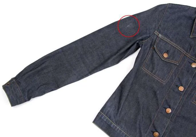 襟裏、右袖、袖先に汚れあり(写真参照)。その他に目立ったシミ、汚れ、ほつれ等ありません。