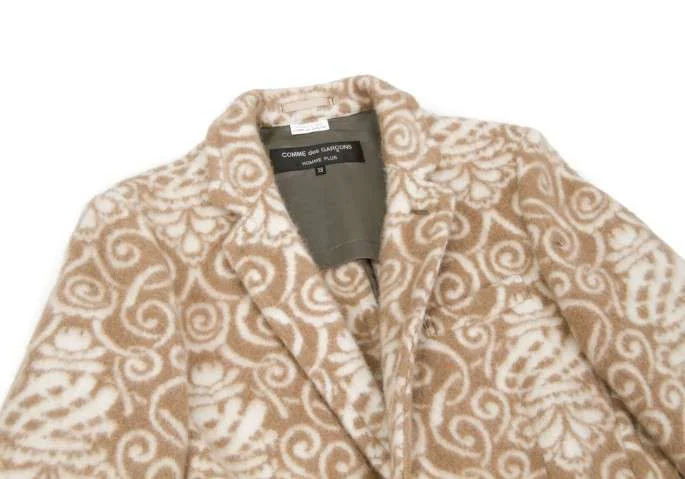 【SALE】コムデギャルソン オムプリュスCOMME des GARCONS HOMME PLUS コットンウールデザイン起毛ロングコート 茶XS