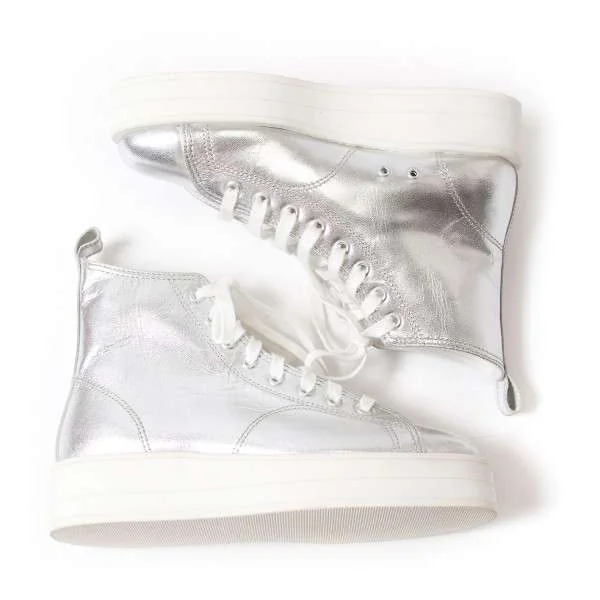 コムデギャルソンCOMME des GARCONS メタリックコーティングハイカットスニーカー シルバー23