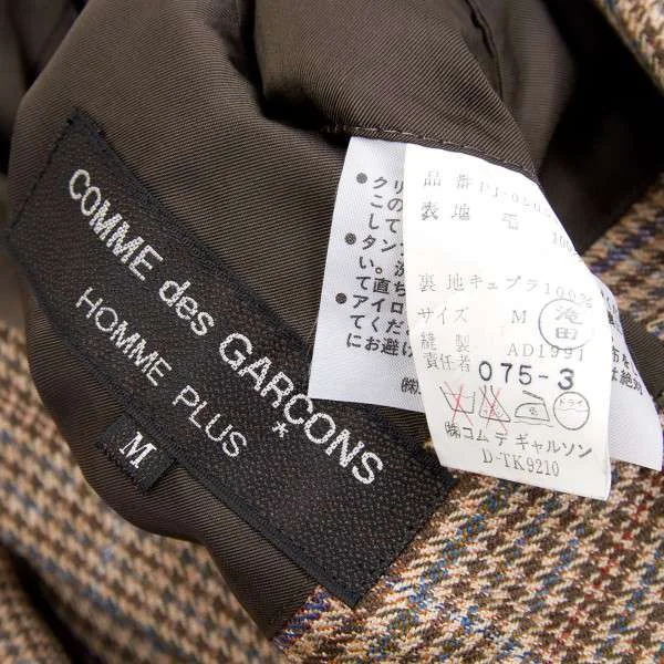 コムデギャルソンオムプリュスCOMME des GARCONS HOMME PLUS ウールチェックデザインテーラードジャケット ベージュ他M