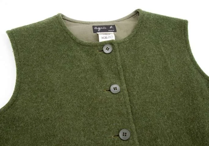 【SALE】アニエスベーagnes b. ウールショートベスト モスグリーン2