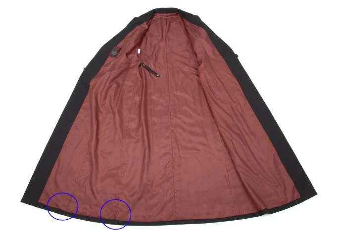 前右裾に薄汚れ、裏地に破れがあります(画像参照)。