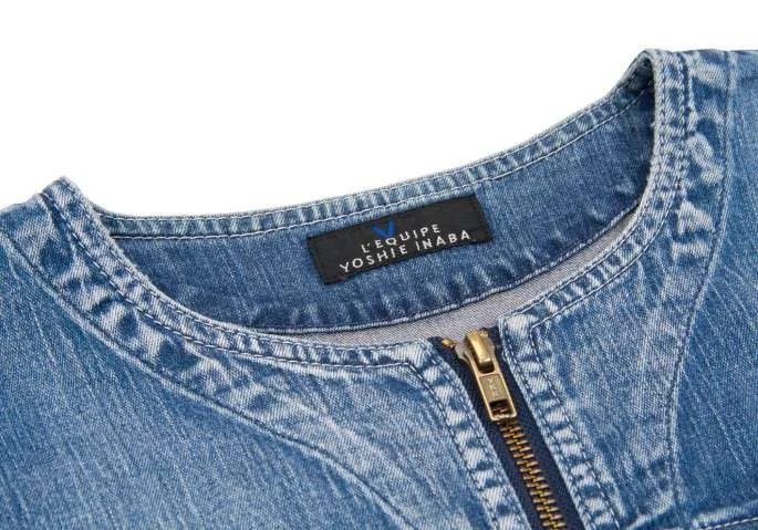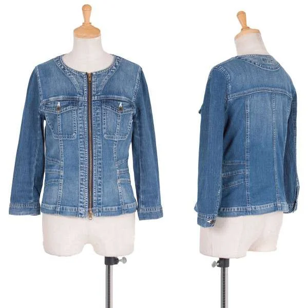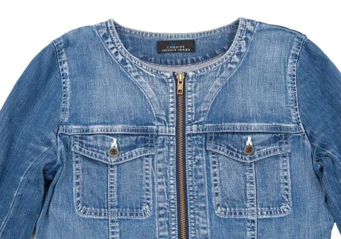 【SALE】レキップ ヨシエイナバL'EQUIPE yoshie inabaノーカラージップデニムジャケット ブルー38