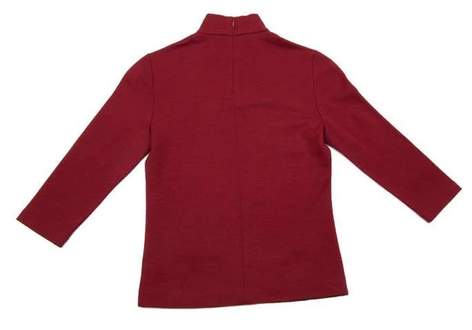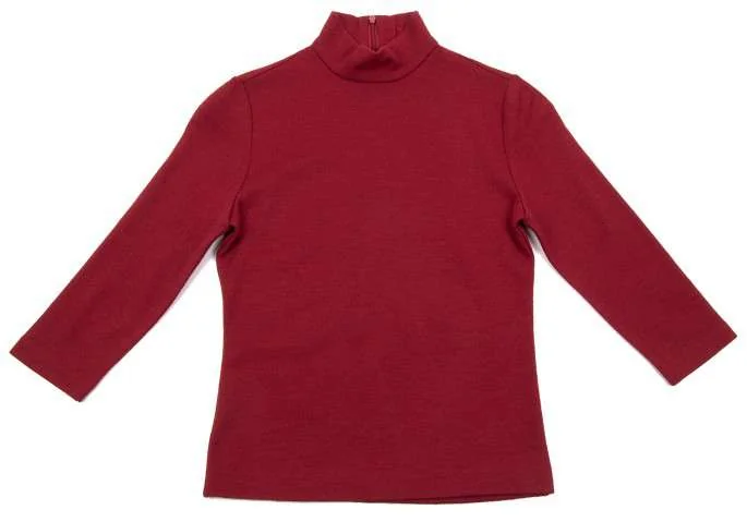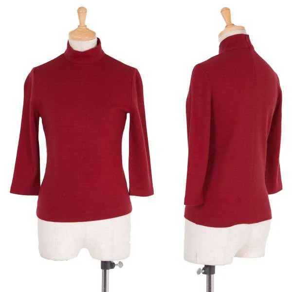 シビラSybilla 七分袖ハイネックウールカットソー   エンジM