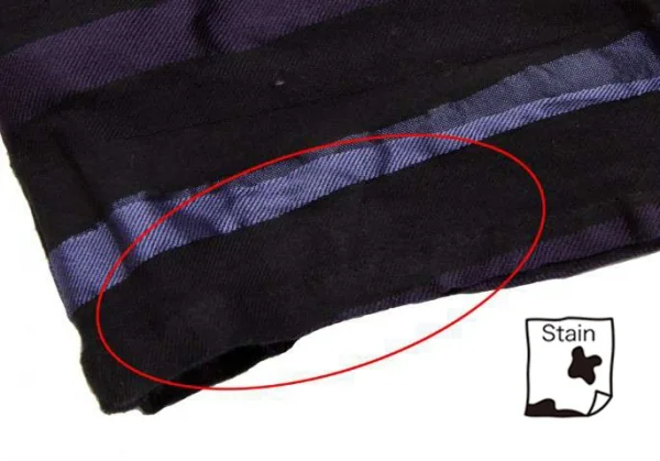 右足裾に薄汚れがあります(画像参照)。その他は目立ったシミ、汚れ、ほつれ等なくいい状態です。クリーニング済み