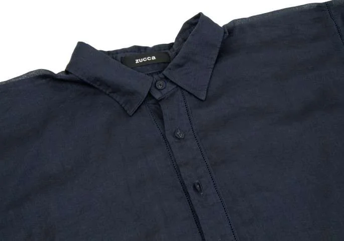 【SALE】ズッカzucca 製品染めシースルーラグランスリーブシャツ 紺M