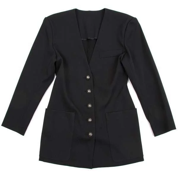 【SALE】ジャンポールゴルチエJean Paul GAULTIER リブストレッチノーカラージャケット 黒M位