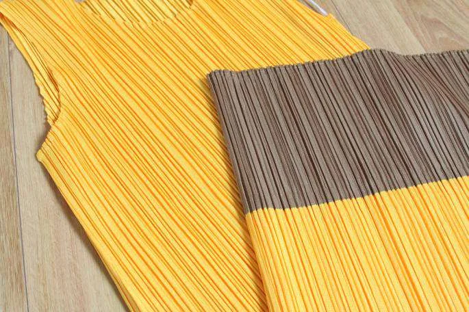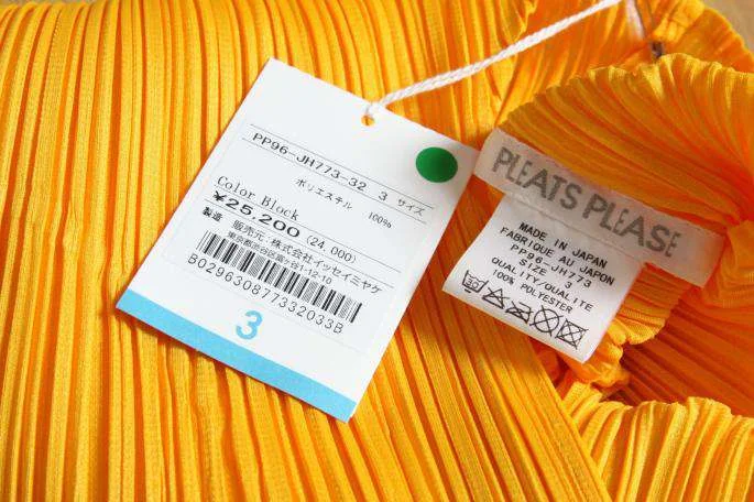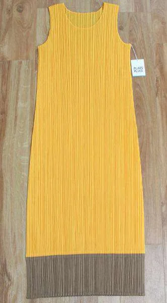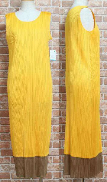 新品!プリーツプリーズPLEATS PLEASE 裾色切替ワンピース3 黄ゴールド3