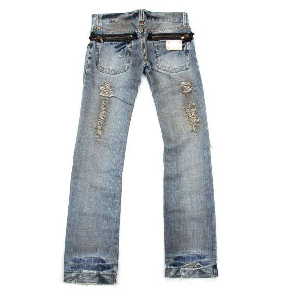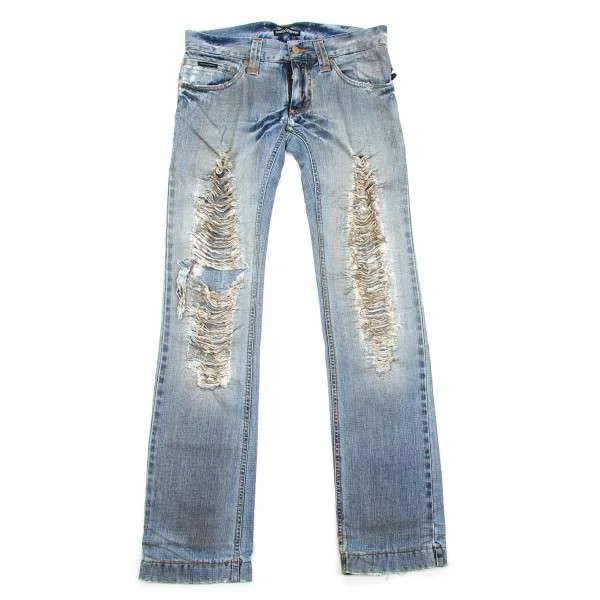 【SALE】ドルチェ&ガッバーナDOLCE&GABBANA サビ加工クラッシュジーンズ ブルー44
