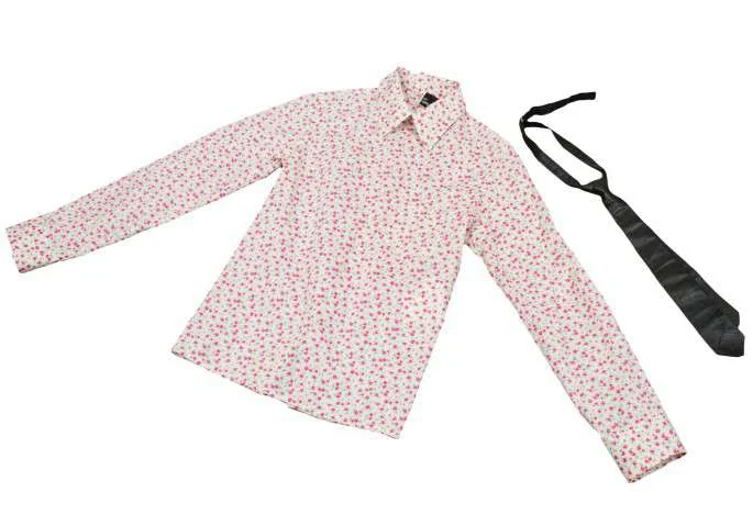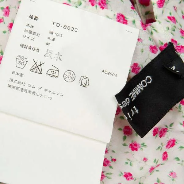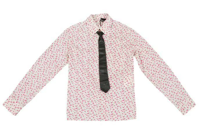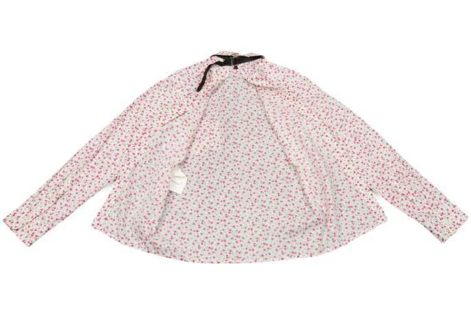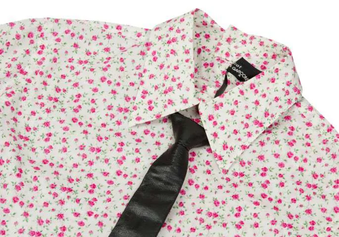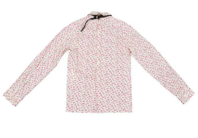 トリコ コムデギャルソンtricot COMME des GARCONSレザーネクタイ付花柄長袖バックボタンシャツ 白M