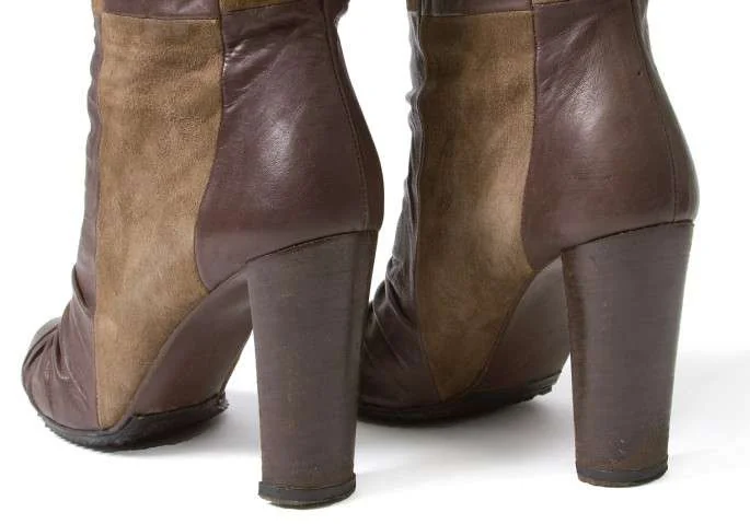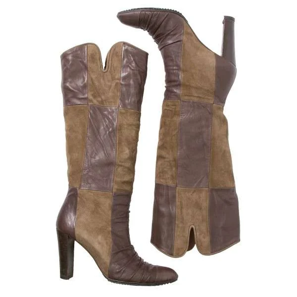 【SALE】ミハラヤスヒロMIHARA YASUHIRO スウェードレザーパッチワークロングブーツ 茶23.5