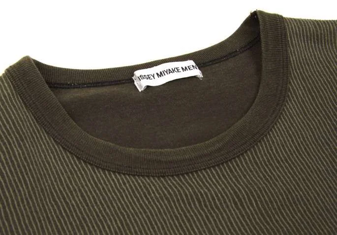 イッセイミヤケメンISSEY MIYAKE MEN ストライプTシャツ モスグリーン系L