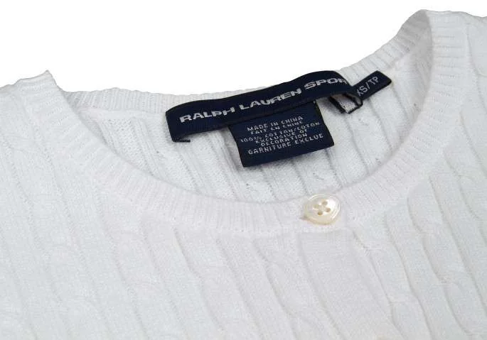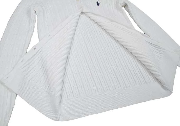 ラルフローレンスポーツRALPH LAUREN SPORT ケーブル編みコットンカーディガン 白XS