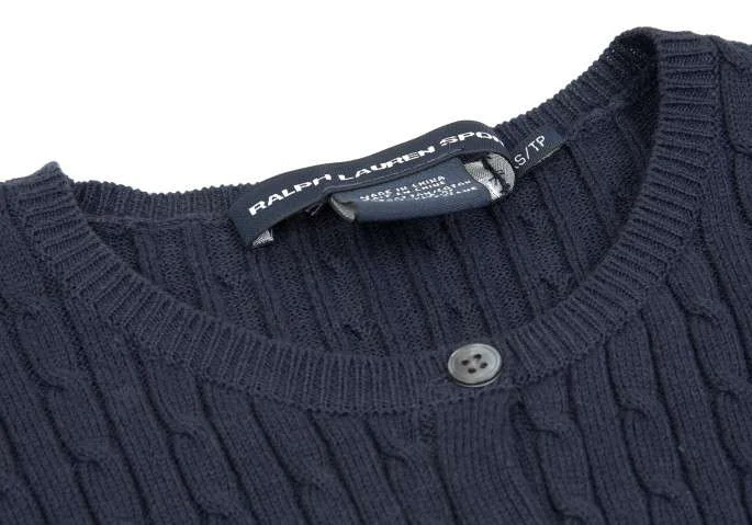ラルフローレンスポーツRALPH LAUREN SPORT ケーブル編みコットンカーディガン 紺XS