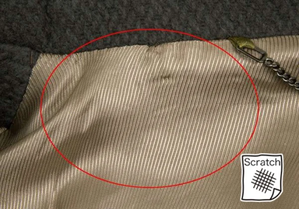 裏地に糸引きがあります(画像参照)。その他は目立ったシミ、汚れ、ほつれ等なくいい状態です。クリーニング済み