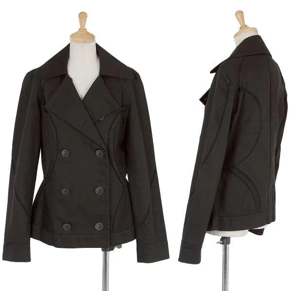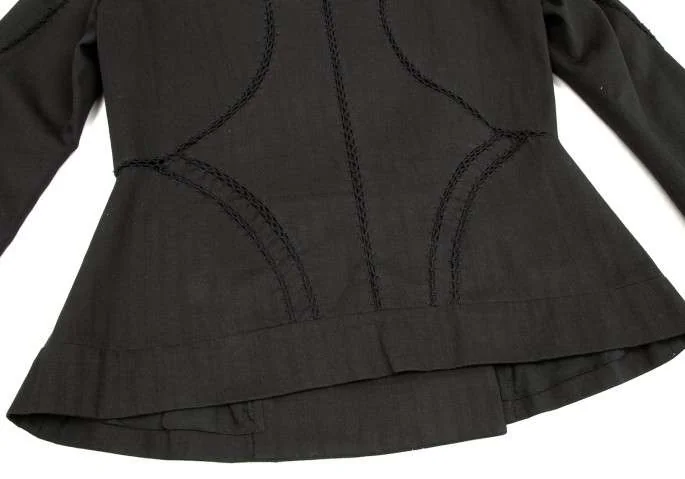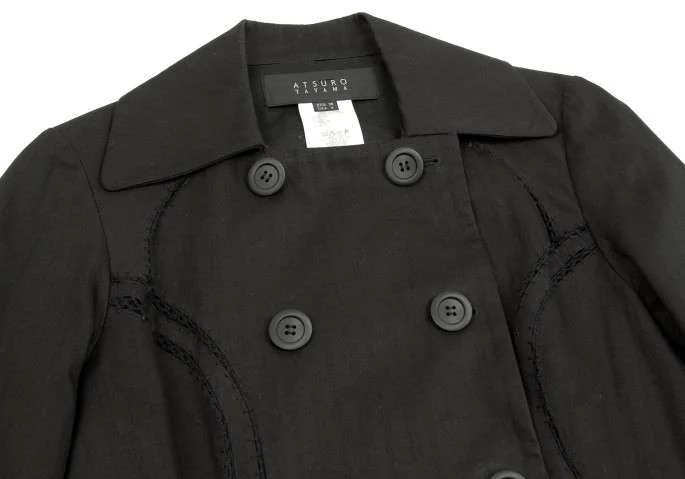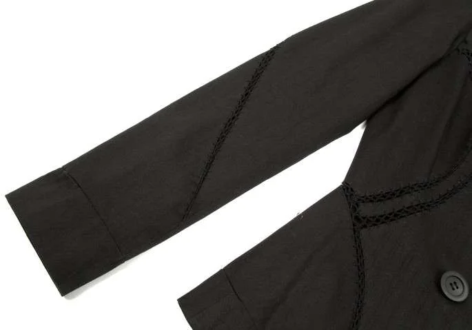 【SALE】アツロウタヤマA/T リネン混カギ編み切替デザインジャケット 黒38