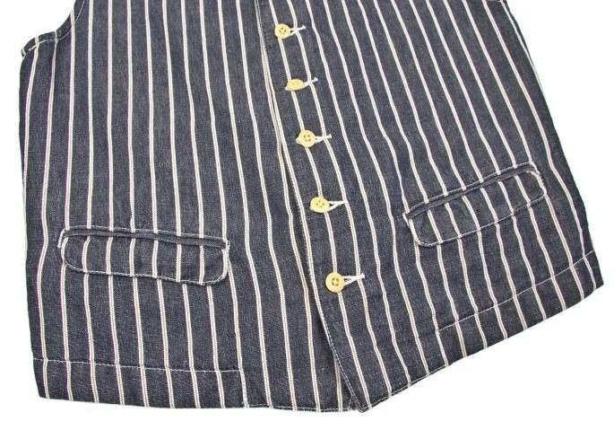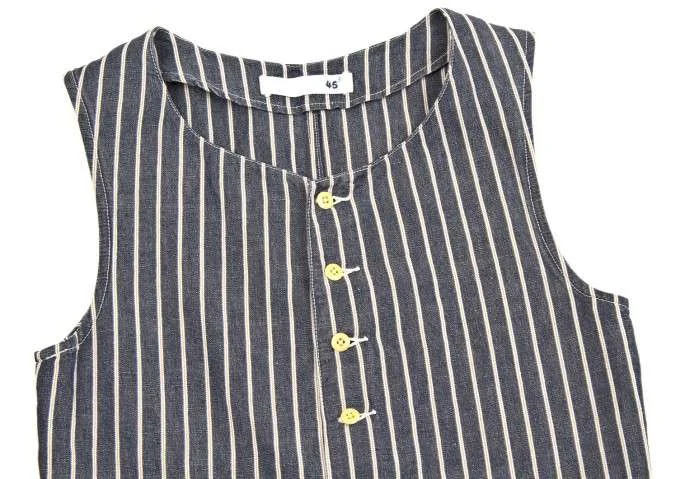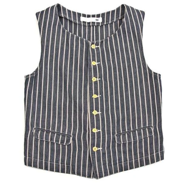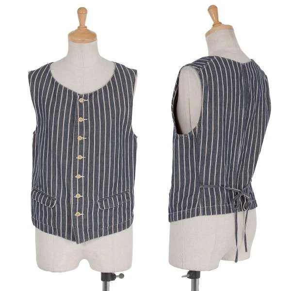 【最終値下げ】45rpm AI INDIGO リネンストライプデザインベスト 紺白ベージュ2