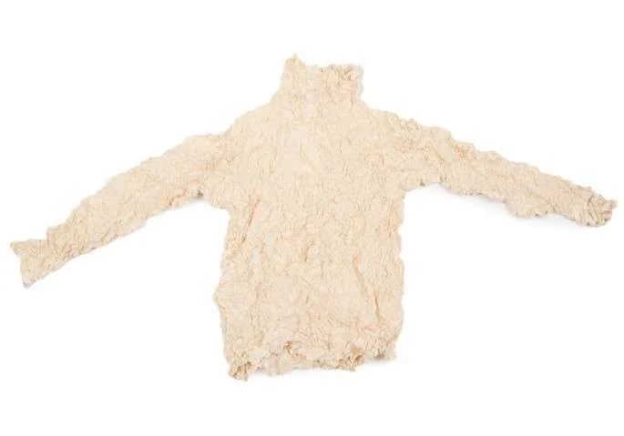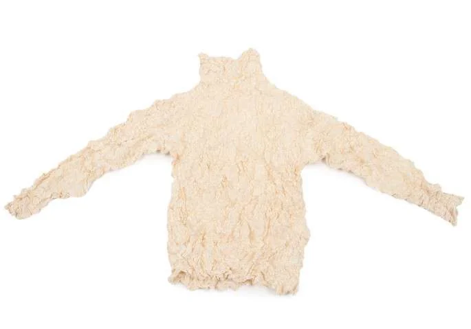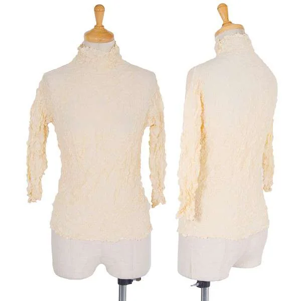 【SALE】イッセイミヤケISSEY MIYAKE ハイネックシワ加工5分袖カットソー 薄ベージュ2